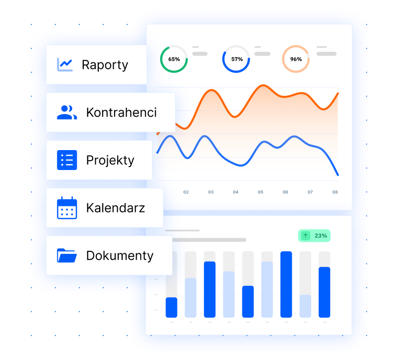 Skorzystaj z wbudowanego CRM do zarządzania klientami oraz dostępnych dla VAT-owców funkcji magazynu. Kalendarz usprawni planowanie i pilnowanie terminów.