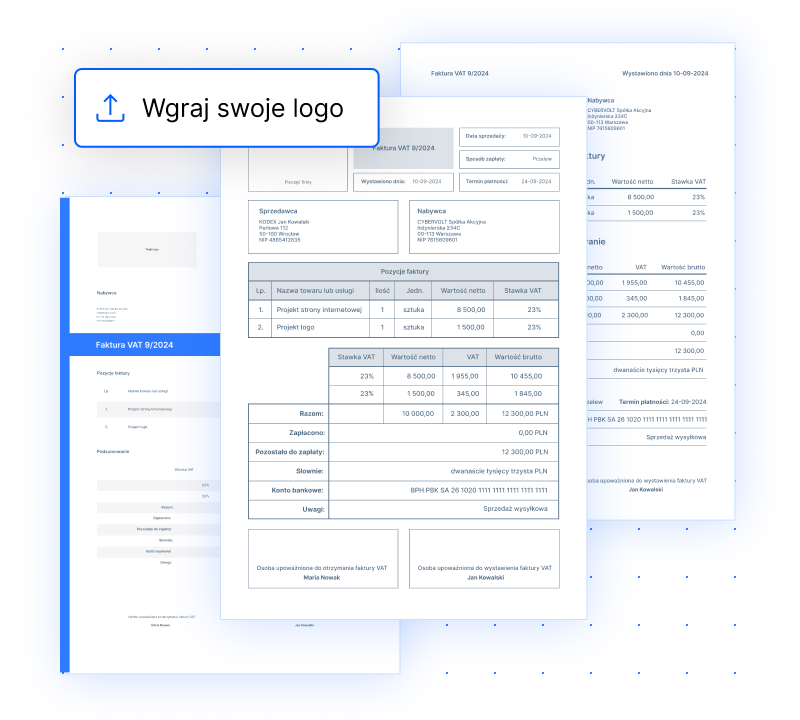 4. W sekcji „Ustawienia konta” → „Dane firmy” → „Logo” możesz wgrać plik graficzny, który będzie automatycznie dołączany do każdej faktury PDF.