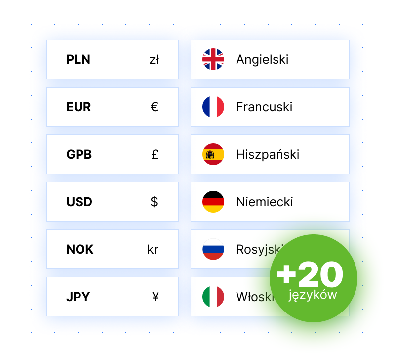 Sprzedaż międzynarodowa połączona z obsługą walut obcych z automatycznym przeliczeniem kursów NBP.